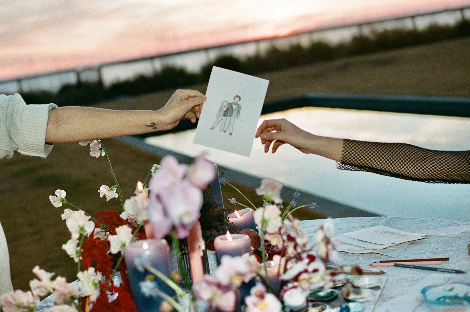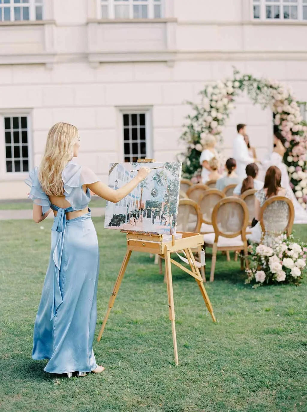 Your artist will create a fully customized service package for exactly what you need and what you don’t. What do you want to remember about the event? Whether you choose a live event painting, watercolor guest portraits, plein air canvas to highlight your venue, or a custom project—your artist will tailor the experience just for you.