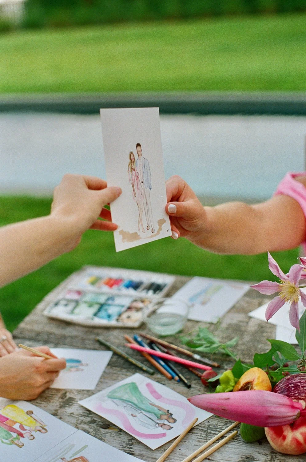 This service can be added to a live painting. We love to recommend a ceremony painting with guest portraits done during the cocktail hour and reception.